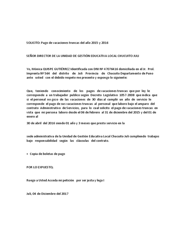 Modelo De Solicitud Para Pago De Vacaciones Truncas Cas 2017 via es.scribd.com